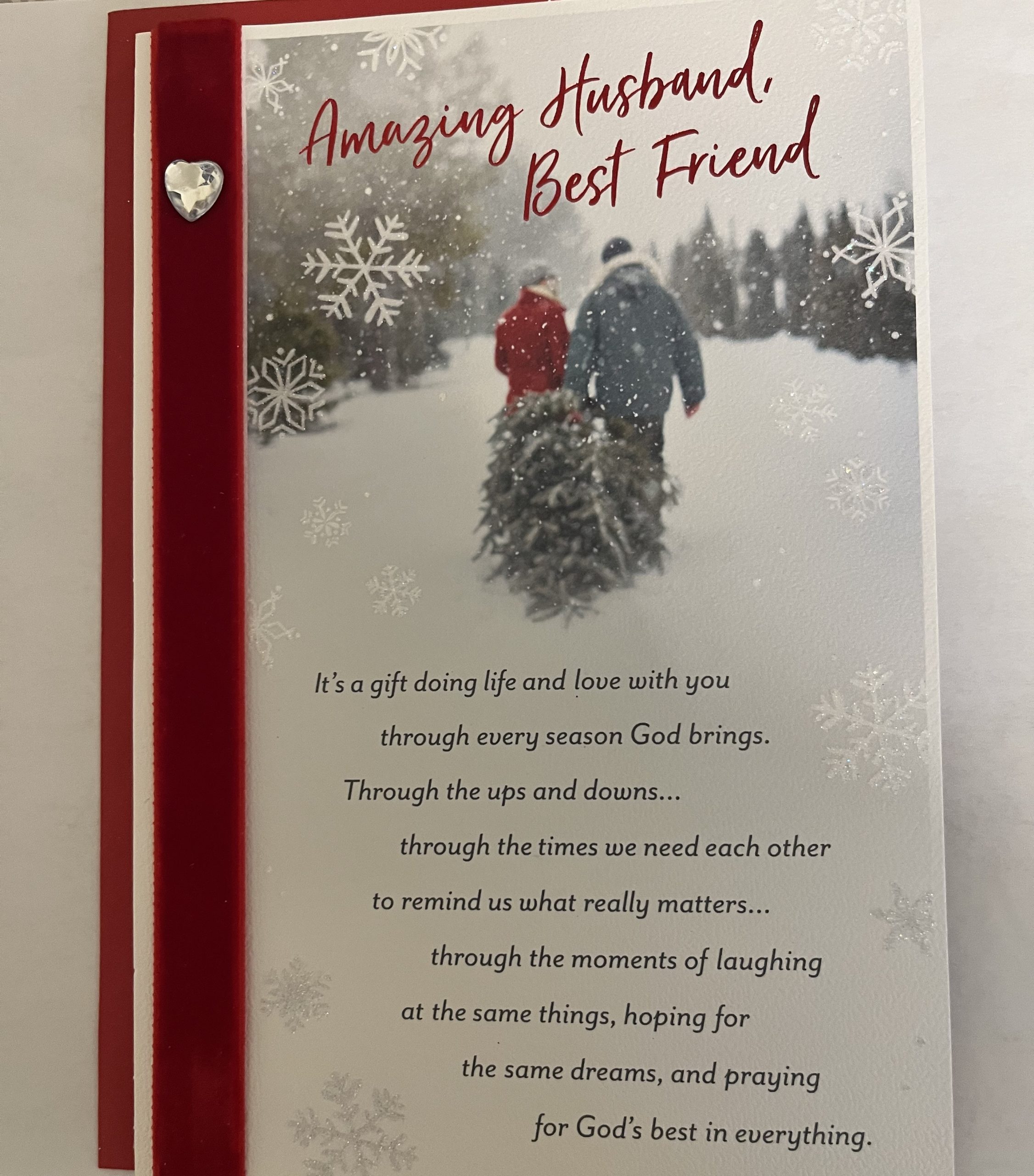 Front: Amazing Husband, Best Friend…It’s a gift doing life and love with you through every season God brings. Through the ups and downs…through the times we need each other to remind us what really matters… through the moments of laughing at the same things, hoping for the same dreams, and praying for God’s best in everything.