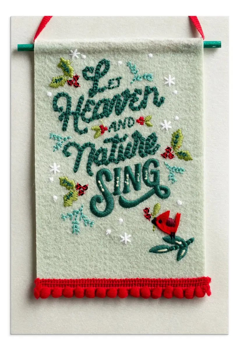 Card features felt, embroidery, and 3D attachments