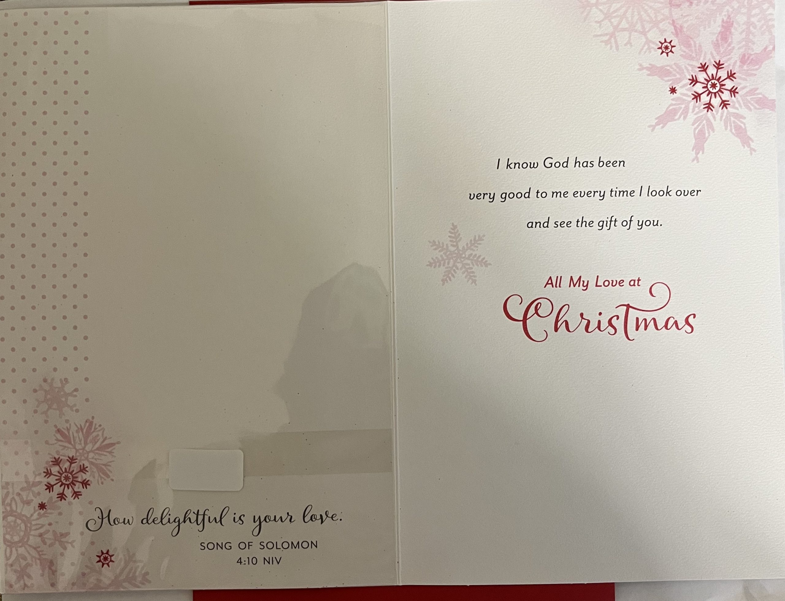 nInside: I know God has been very good to me every time I look over and see the gift of you. All My Love at Christmas