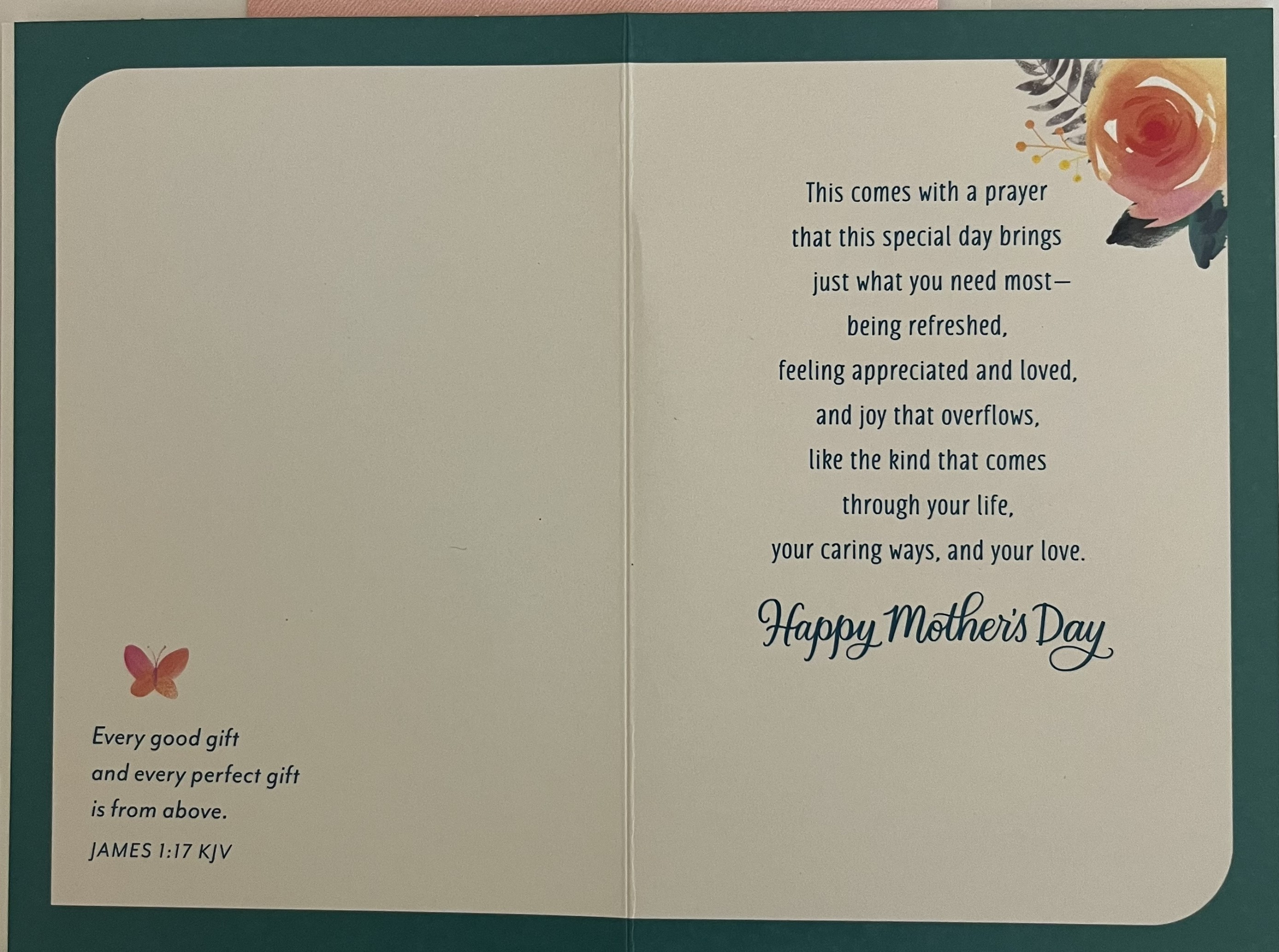 This comes with a prayer that this special day brings just what you need most-being refreshed, feeling appreciated and loved, and joy that overflows, like the kind that comes through your life, your caring ways, and your love.