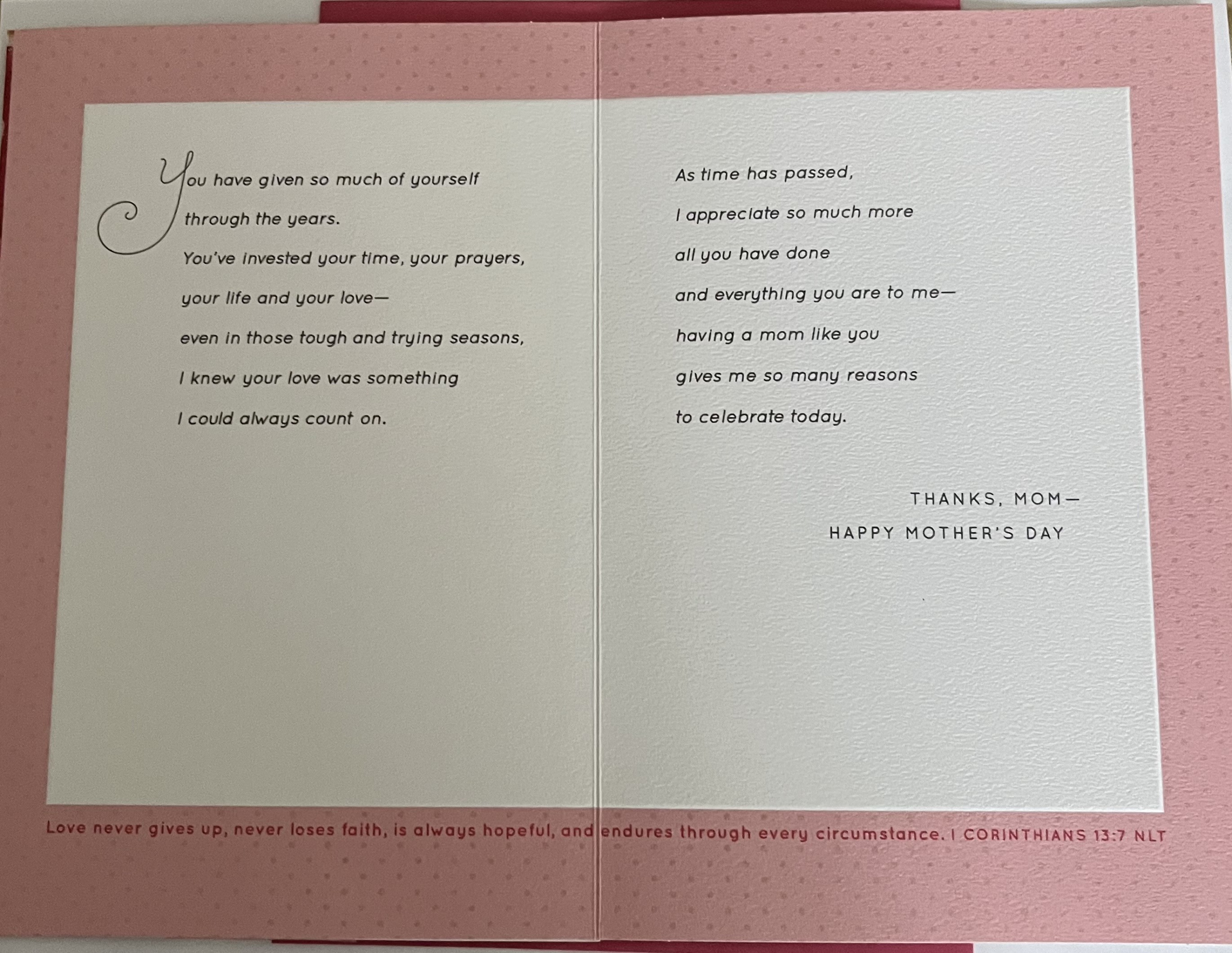 Convey words of love and appreciation for your MOM with this beautiful Mother’s Day card from DaySpring.