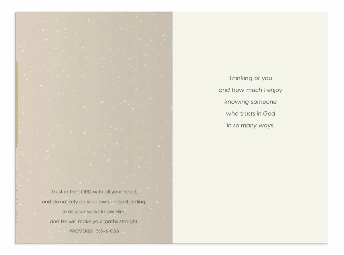 Thinking of you and how much I enjoy knowing someone who trusts in God in so many ways.